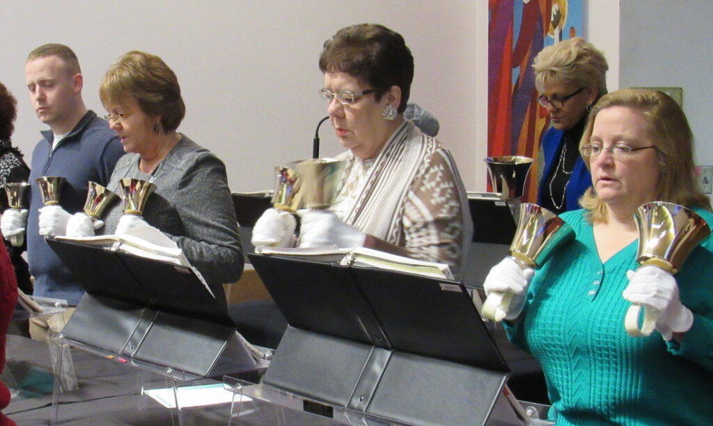 Zion’s bell choir is a dedicated and fun group of approximately 10 ringers who participate in a 3-octave bell and handchime choir.  We practice Wednesday evenings with our main goal being to enhance Sunday worship and have fun doing it. Our main focus of course is sacred music, some traditional and some praise, but we also have played Phantom of the Opera, Lady Gaga’s Just Dance, and Frozen’s Let it Go to name a few for our congregation’s enjoyment.